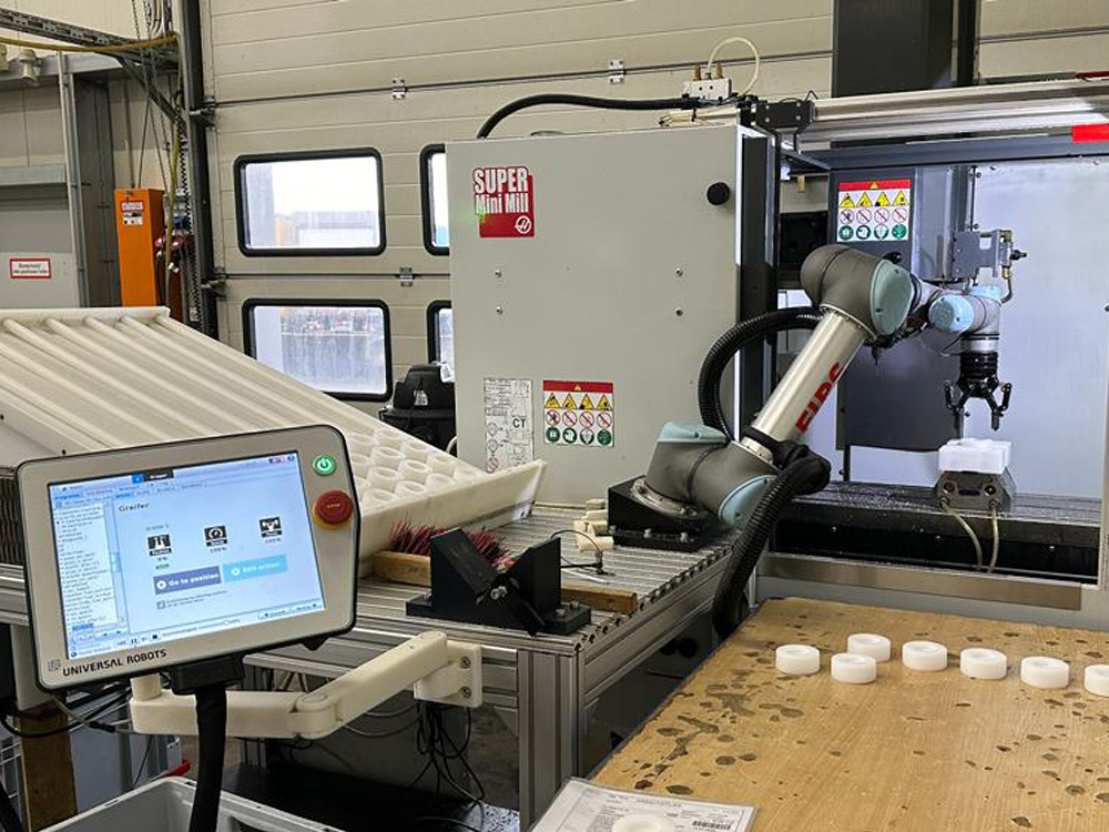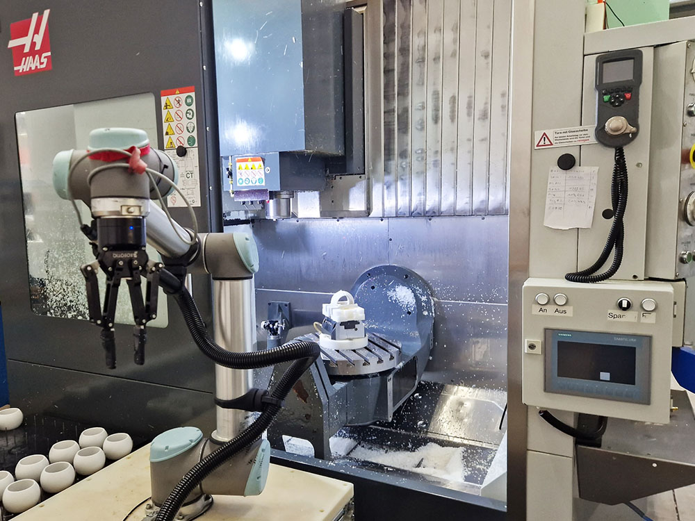Der lange Roboterarm stemmt bis zu 12,5 kg Gewicht. Damit ist er eine kompakter und robuster Industrieroboter. Wir optimieren mit ihm unsere Prozesse bei wettbewerbsfähigen Kosten.