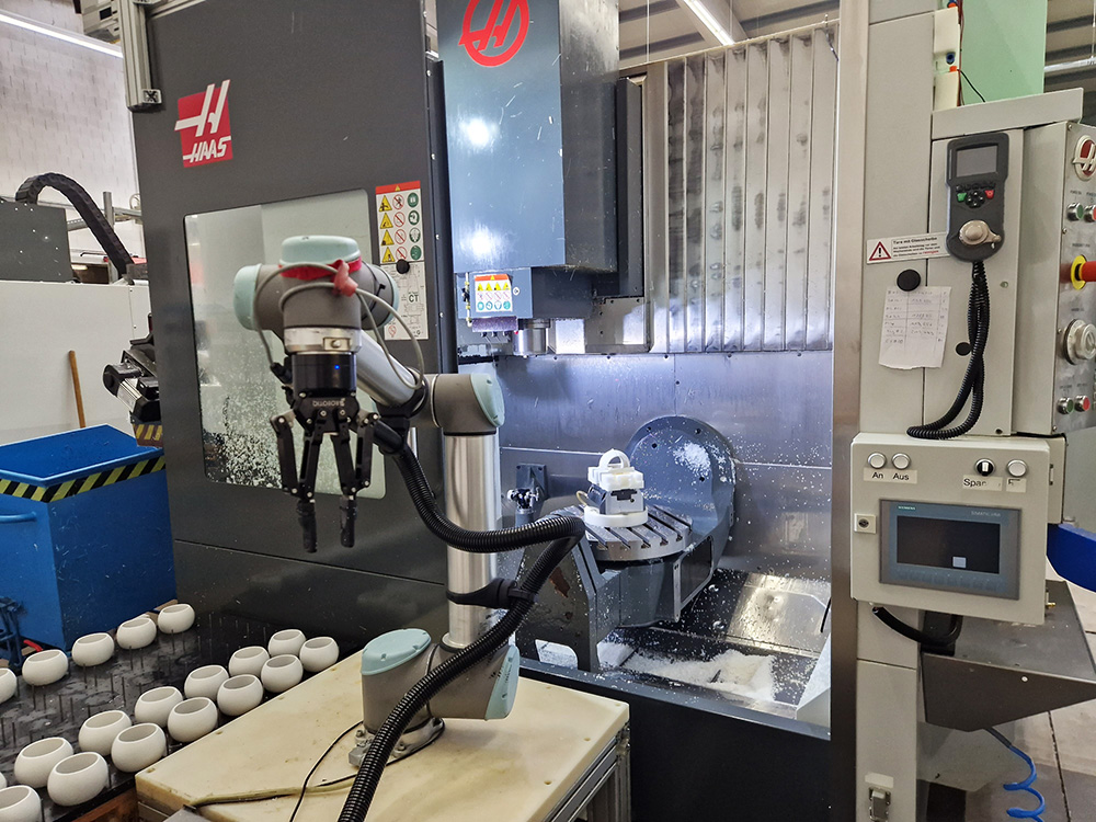 Unser Maschinenpark besteht aus Bearbeitungszentren der Firma HAAS mit bis zu 5 Achsen. Hierzu kommen Bearbeitungszentren der Marken Spinner und Matec, ebenfalls 5 Achsen. Seit Ende 2023 können wir zusätzlich auf einer HOMAG Centateq Werkstücke in einer Größe von max. 3475x1550 mit 5 Achsen bearbeiten. Außerdem sind 5 Maschinen mit Robotern automatisiert. Hiermit entlasten wir unser Personal von eintönigen Arbeiten und können eine äußerst kostengünstige Serienfertigung bewerkstelligen.